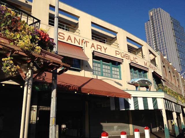 We walked along until we came to signs for Pike Place Market, then we started to climb up. We planned to visit the market in the morning.