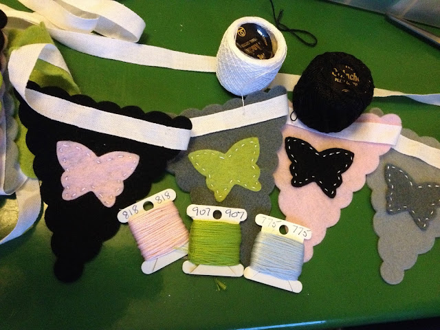 I had some left over felt from school-the unpopular colours! So I have made some bunting to put in the shed. I have a little desk in there. I have not actually sat in there to do anything yet but I intend to.I have made a large amount of glue dot glittery things to go on Christmas cards which I intend to start on soon. I have had a few trials and have cut out some felt tree shapes.